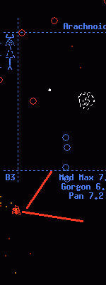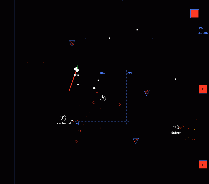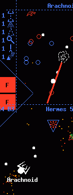 This was used as the full-page background for the main XPilot page; I cropped the original image again just for this page. Anyways, this is Insectoid coming to Arachnoid's defense against the lasering Bmw on Fishfight. |