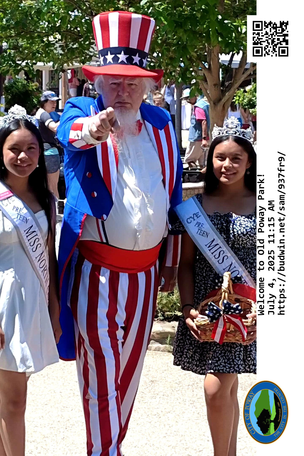 The image resolution is 300 dots per inch, so the picture dimensions are 1800x1200 pixels. The printable image includes the city seal, picture label ("Welcome to Old Poway Park") and the Q-R code that can be used to retrieve the picture from the Web.