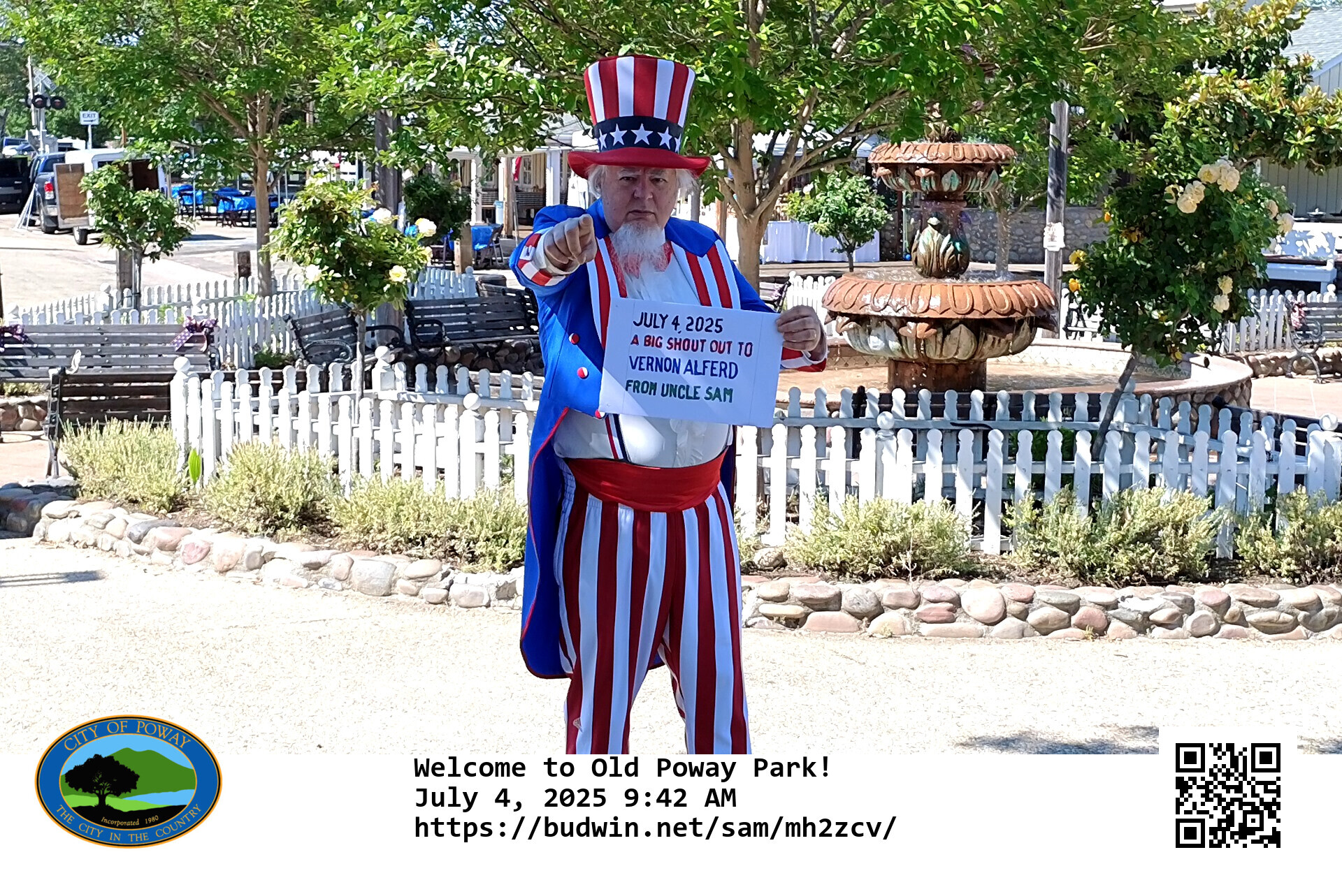 The image resolution is 300 dots per inch, so the picture dimensions are 1800x1200 pixels. The printable image includes the city seal, picture label ("Welcome to Old Poway Park") and the Q-R code that can be used to retrieve the picture from the Web.