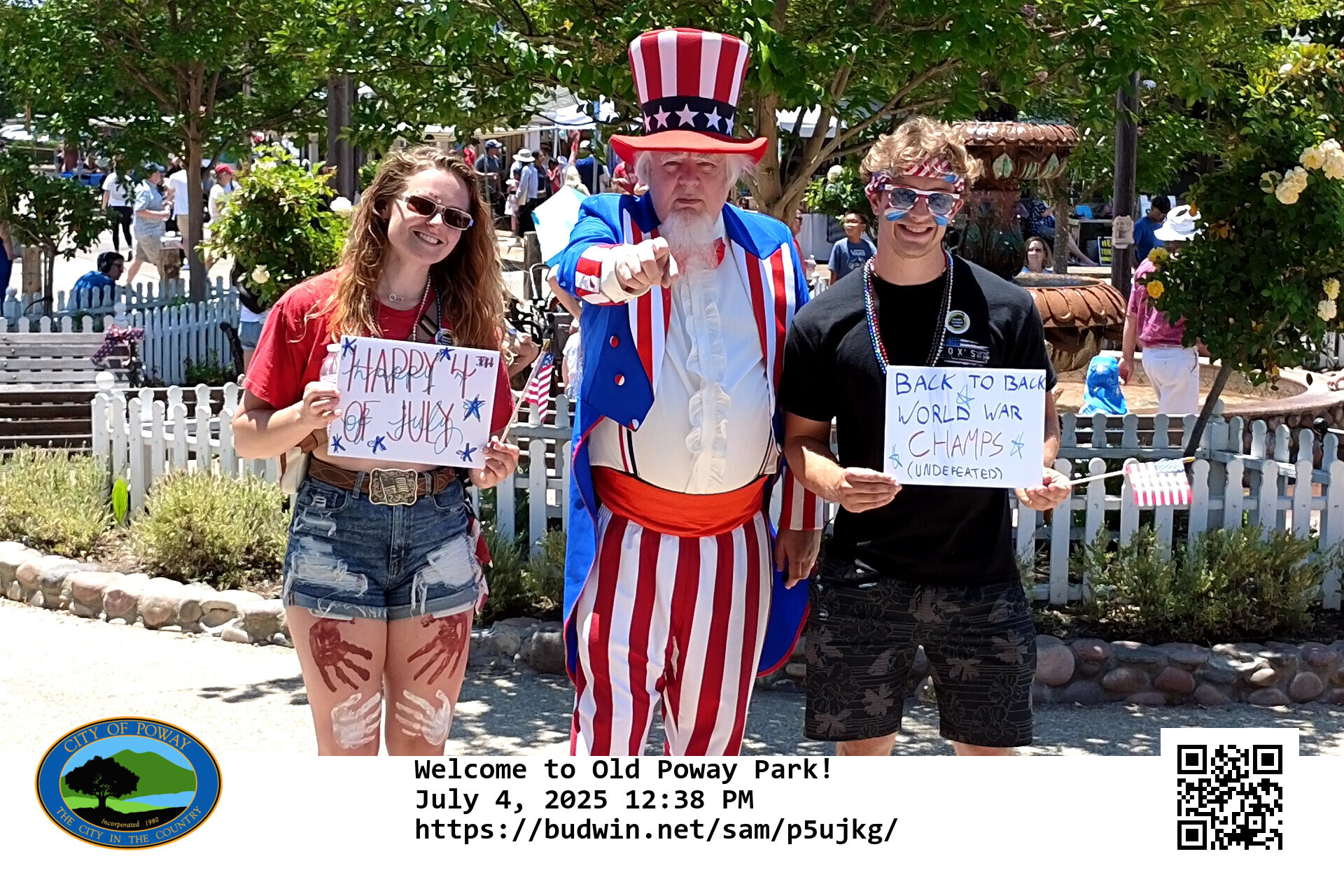 The image resolution is 300 dots per inch, so the picture dimensions are 1800x1200 pixels. The printable image includes the city seal, picture label ("Welcome to Old Poway Park") and the Q-R code that can be used to retrieve the picture from the Web.